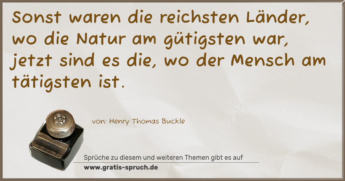 Sonst waren die reichsten Länder, wo die Natur am gütigsten war, jetzt sind es die, wo der Mensch am tätigsten ist.