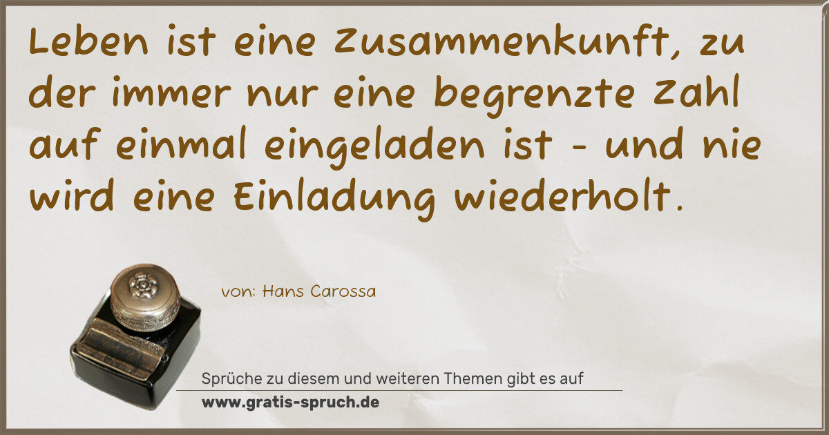 Leben ist eine Zusammenkunft, zu der immer nur eine begrenzte Zahl auf einmal eingeladen ist - und nie wird eine Einladung wiederholt.