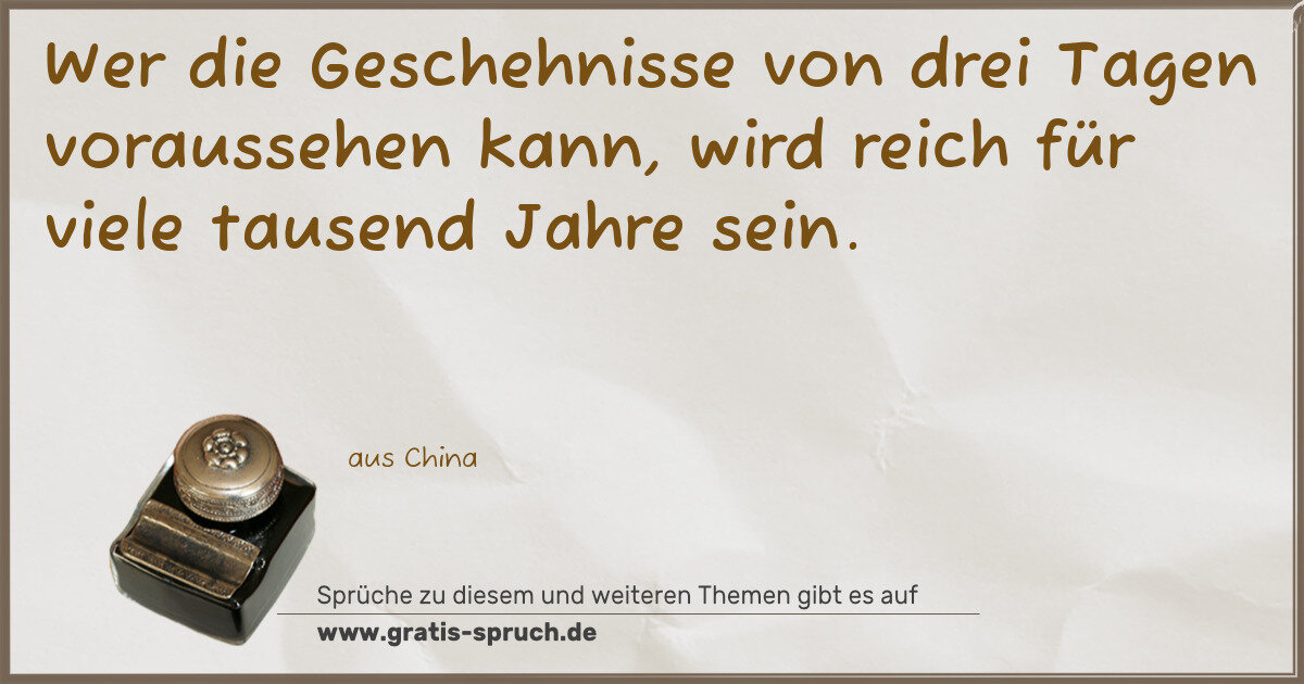 Wer die Geschehnisse von drei Tagen voraussehen kann, wird reich für viele tausend Jahre sein.