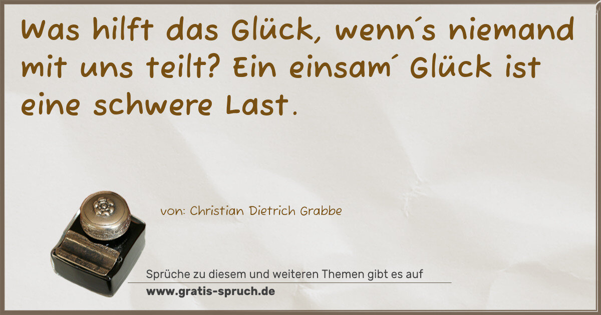 Was hilft das Glück, wenn´s niemand mit uns teilt? Ein einsam´ Glück ist eine schwere Last.