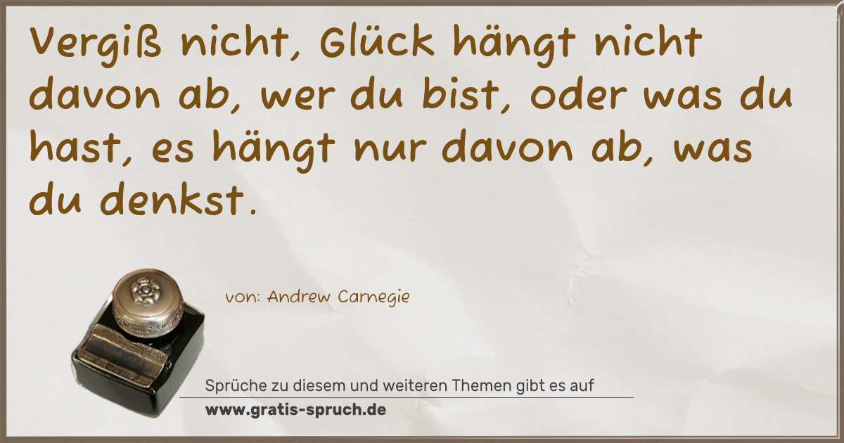 Vergiß nicht, Glück hängt nicht davon ab, wer du bist, oder was du hast, es hängt nur davon ab, was du denkst.