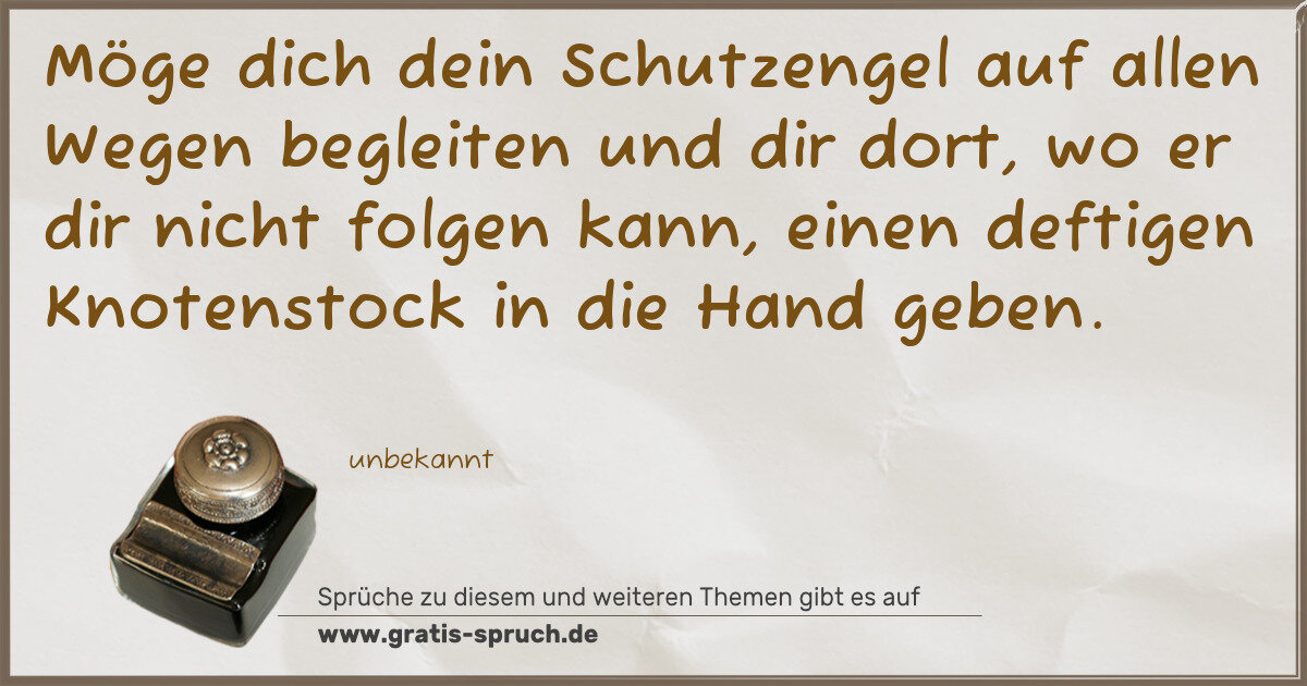 Möge dich dein Schutzengel auf allen Wegen begleiten und dir dort, wo er dir nicht folgen kann, einen deftigen Knotenstock in die Hand geben.