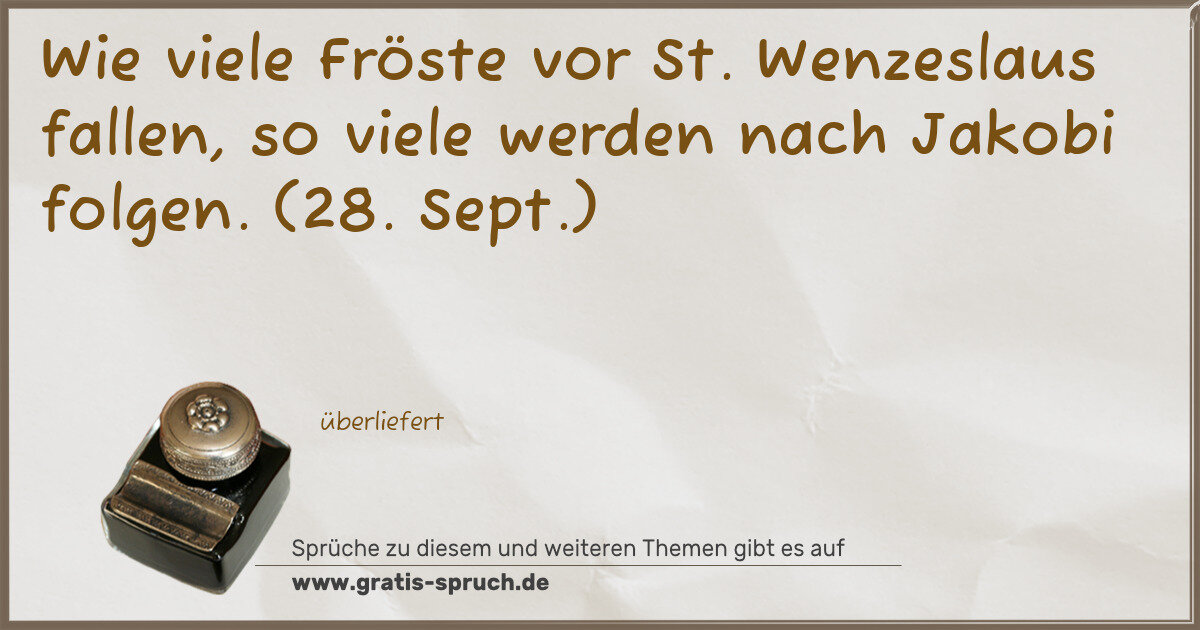 Wie viele Fröste vor St. Wenzeslaus fallen, so viele werden nach Jakobi folgen. (28. Sept.)