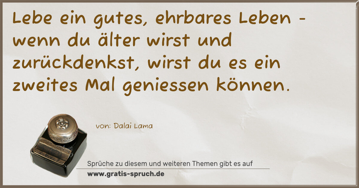 Lebe ein gutes, ehrbares Leben - wenn du älter wirst und zurückdenkst, wirst du es ein zweites Mal geniessen können.