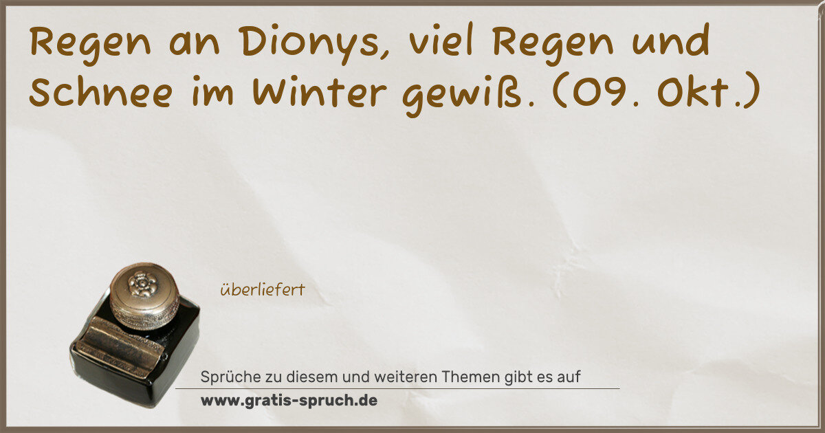 Regen an Dionys, viel Regen und Schnee im Winter gewiß. (09. Okt.)
