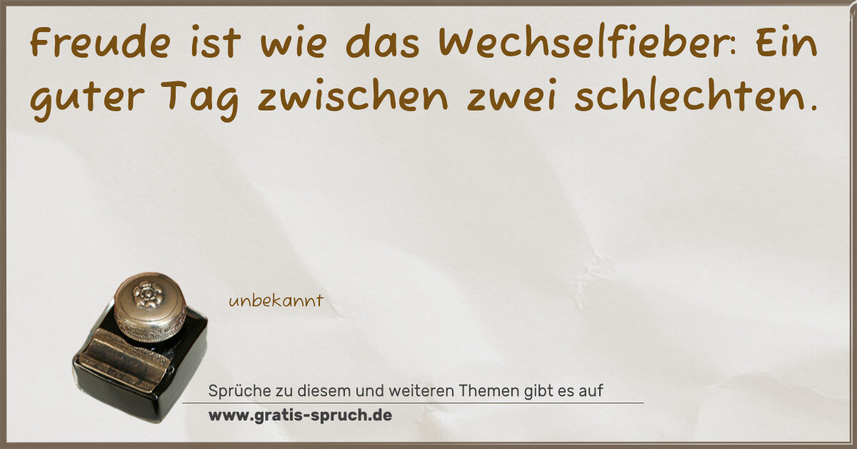 Freude ist wie das Wechselfieber: Ein guter Tag zwischen zwei schlechten.