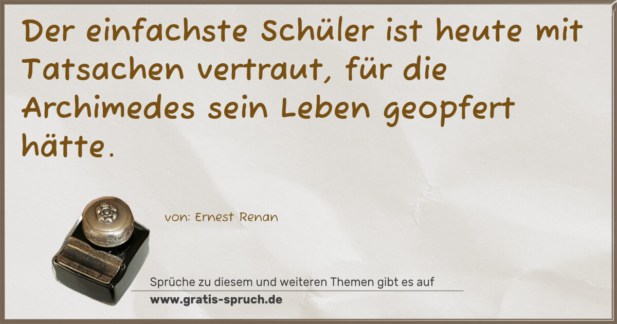 Der einfachste Schüler ist heute mit Tatsachen vertraut, für die Archimedes sein Leben geopfert hätte.