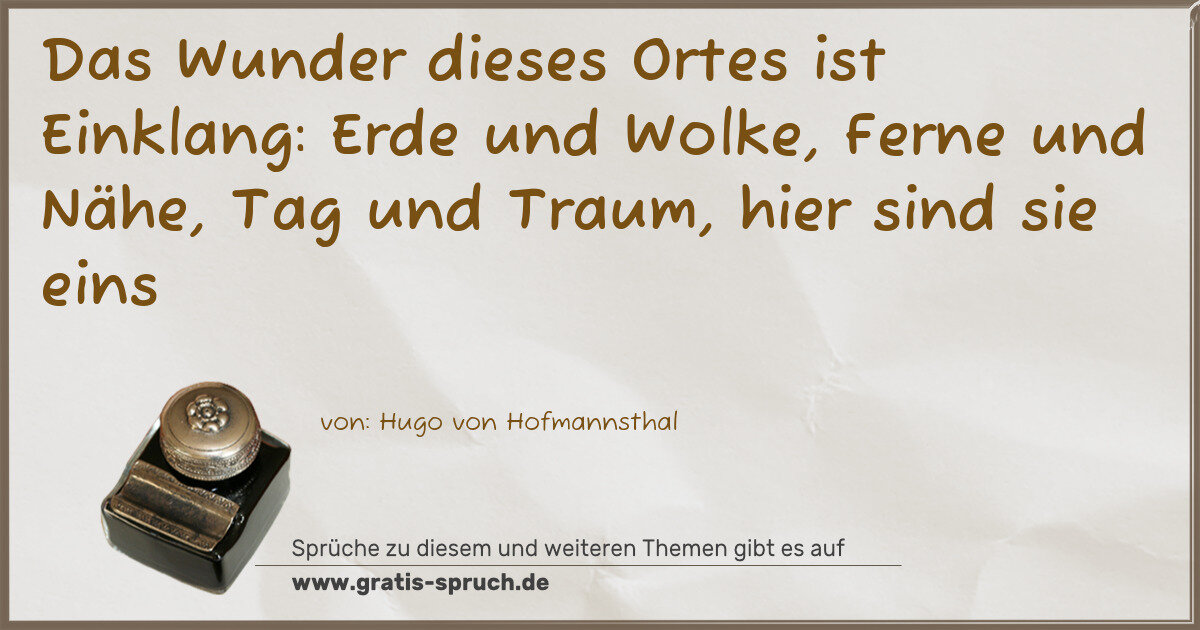 Das Wunder dieses Ortes ist Einklang: Erde und Wolke, Ferne und Nähe, Tag und Traum, hier sind sie eins