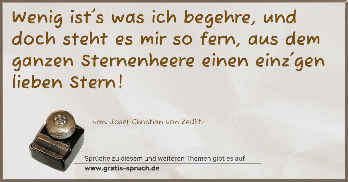 Wenig ist's was ich begehre, und doch steht es mir so fern, aus dem ganzen Sternenheere einen einz'gen lieben Stern!