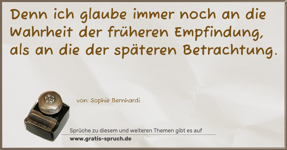 Denn ich glaube immer noch an die Wahrheit der früheren Empfindung, als an die der späteren Betrachtung.