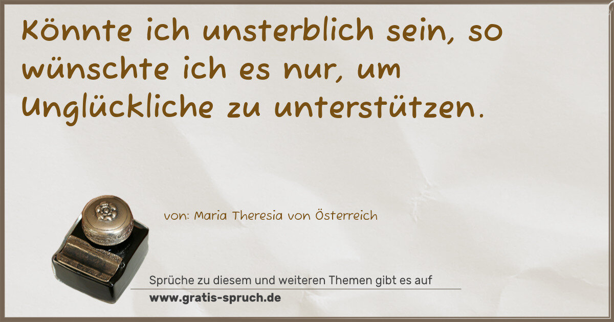 Könnte ich unsterblich sein, so wünschte ich es nur, um Unglückliche zu unterstützen.