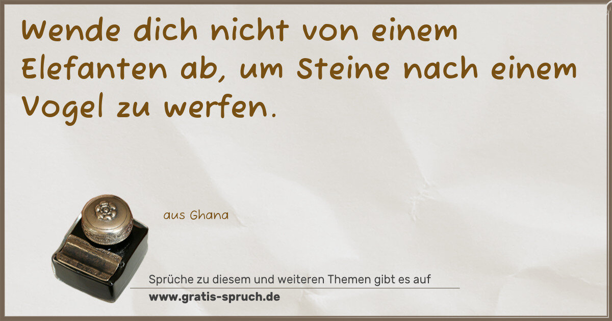 Wende dich nicht von einem Elefanten ab, um Steine nach einem Vogel zu werfen.