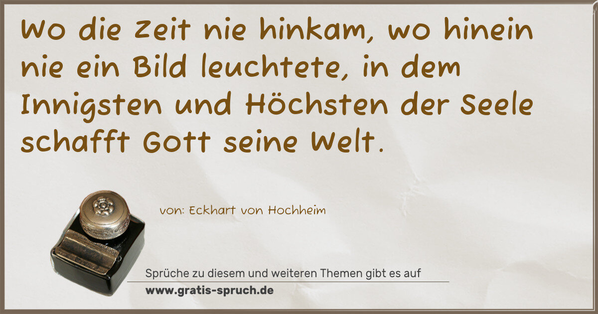 Wo die Zeit nie hinkam, wo hinein nie ein Bild leuchtete, in dem Innigsten und Höchsten der Seele schafft Gott seine Welt.