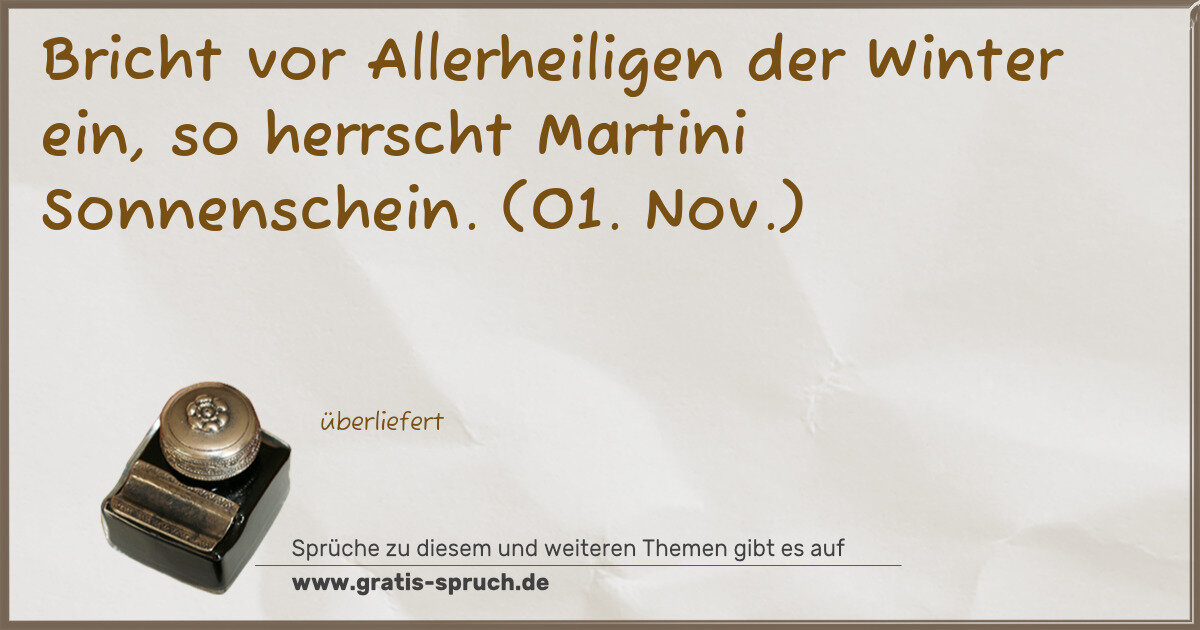 Bricht vor Allerheiligen der Winter ein, so herrscht Martini Sonnenschein. (01. Nov.)