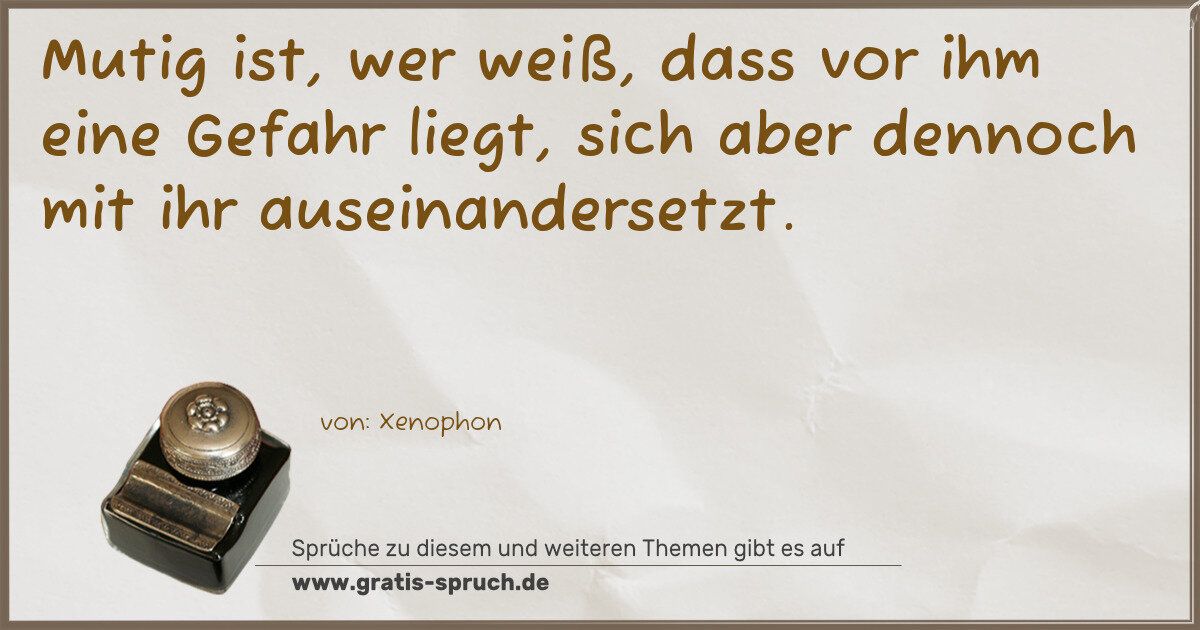 Mutig ist, wer weiß, dass vor ihm eine Gefahr liegt, sich aber dennoch mit ihr auseinandersetzt.