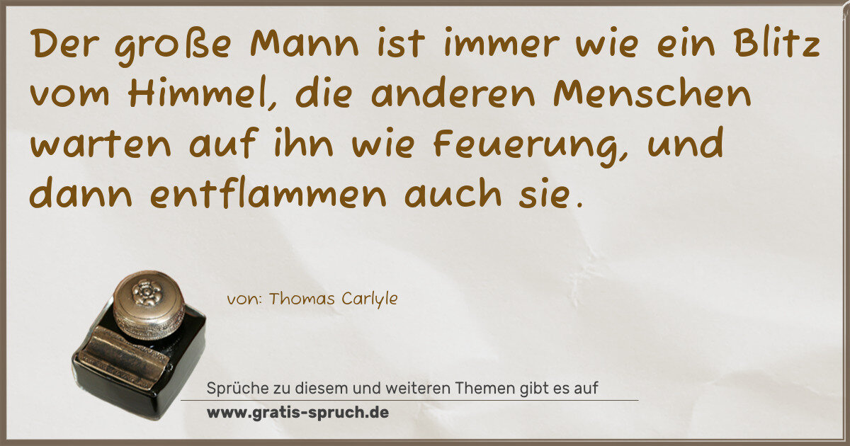 Der große Mann ist immer wie ein Blitz vom Himmel, die anderen Menschen warten auf ihn wie Feuerung, und dann entflammen auch sie.