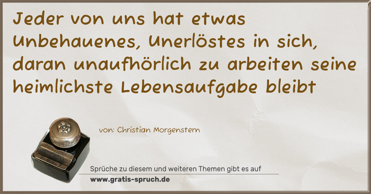 Jeder von uns hat etwas Unbehauenes, Unerlöstes in sich, daran unaufhörlich zu arbeiten seine heimlichste Lebensaufgabe bleibt