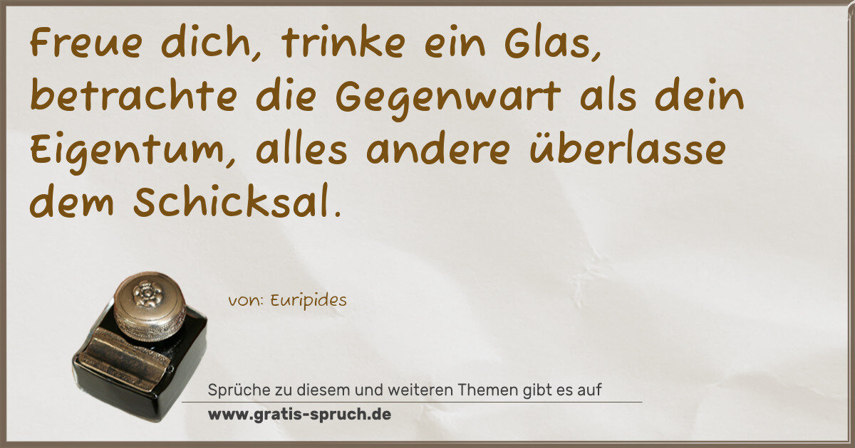 Freue dich, trinke ein Glas, betrachte die Gegenwart als dein Eigentum, alles andere überlasse dem Schicksal.