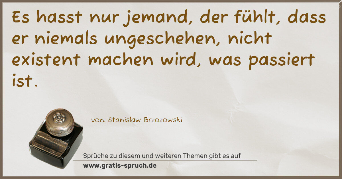 Es hasst nur jemand, der fühlt, dass er niemals ungeschehen, nicht existent machen wird, was passiert ist.