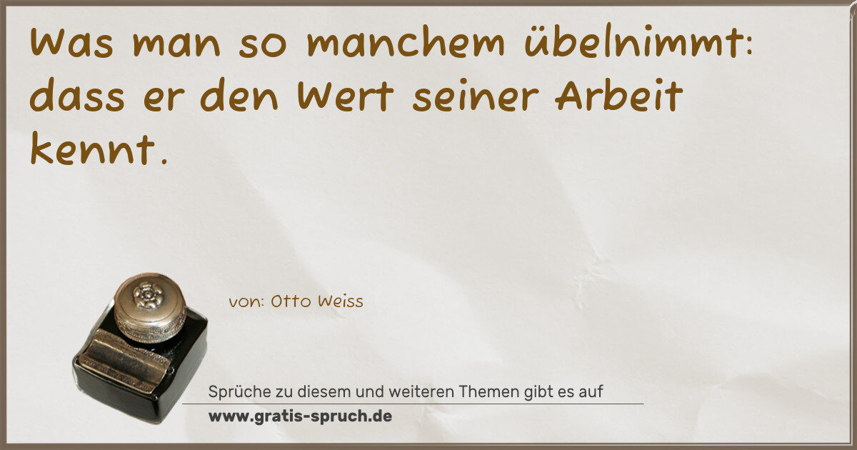 Was man so manchem übelnimmt: dass er den Wert seiner Arbeit kennt.