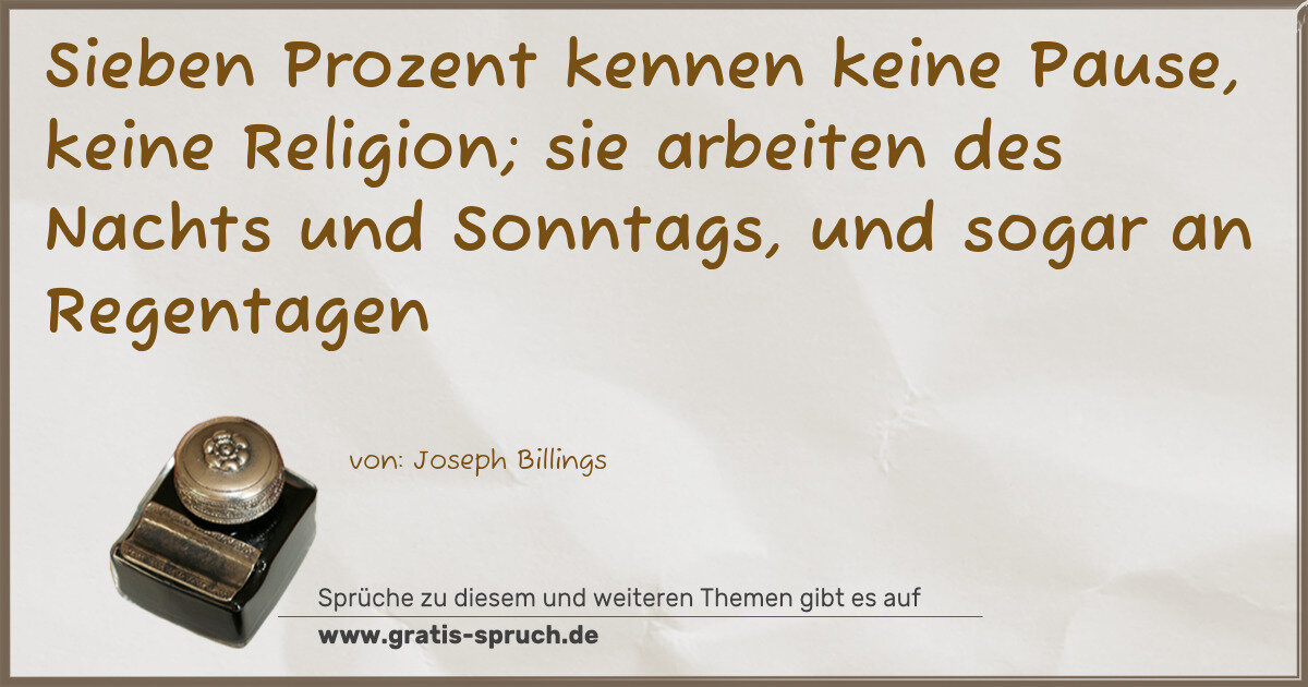 Sieben Prozent kennen keine Pause, keine Religion; sie arbeiten des Nachts und Sonntags, und sogar an Regentagen