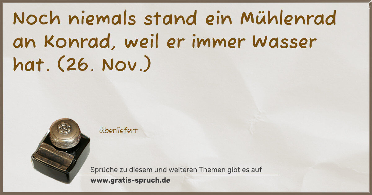 Noch niemals stand ein Mühlenrad an Konrad, weil er immer Wasser hat. (26. Nov.)
