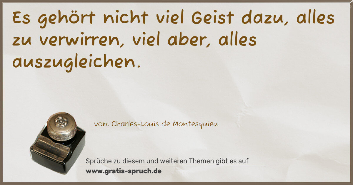 Es gehört nicht viel Geist dazu, alles zu verwirren, viel aber, alles auszugleichen.