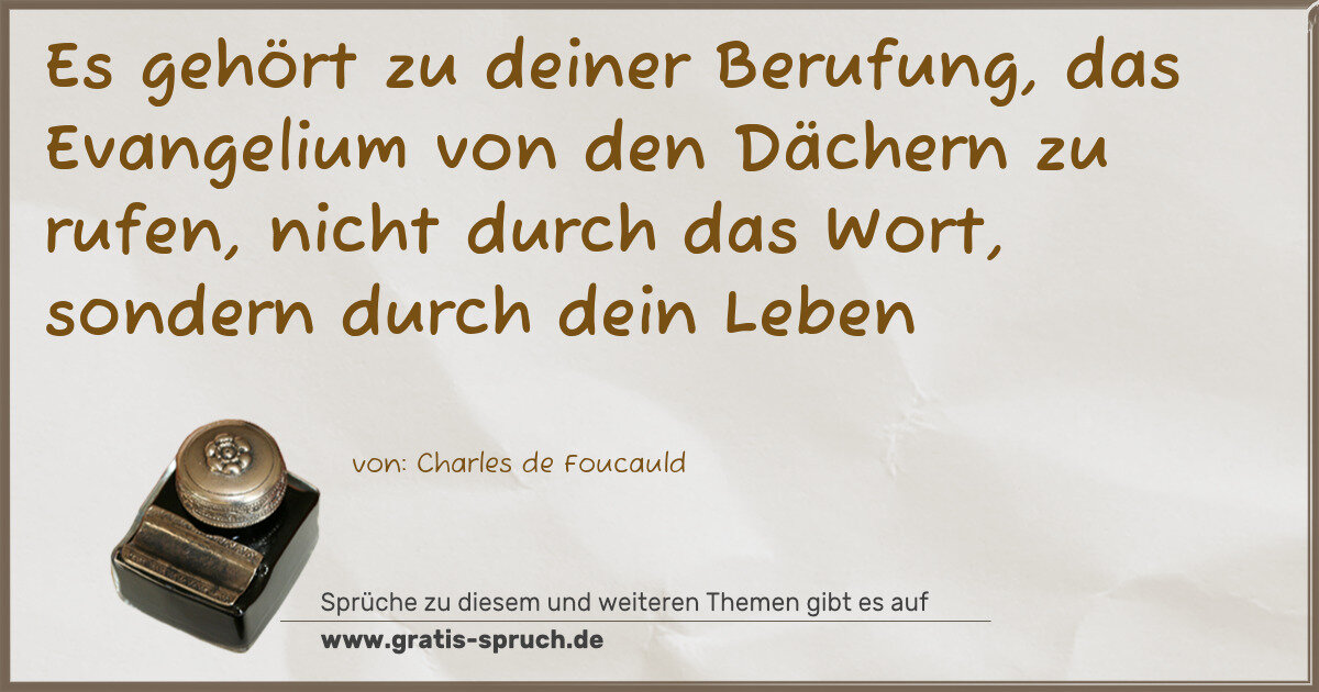 Es gehört zu deiner Berufung, das Evangelium von den Dächern zu rufen, nicht durch das Wort, sondern durch dein Leben