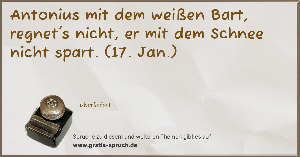 Antonius mit dem weißen Bart, regnet's nicht, er mit dem Schnee nicht spart. (17. Jan.)