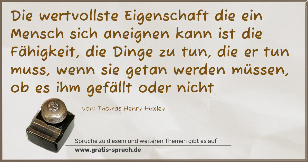 »Die wertvollste Eigenschaft die ein Mensch sich aneignen kann ist die Fähigkeit, die Dinge zu tun, die er tun muss, wenn sie getan werden müssen, ob es ihm gefällt oder nicht