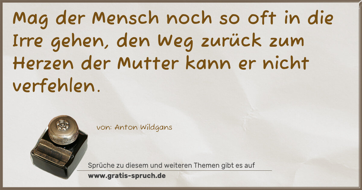 Mag der Mensch noch so oft in die Irre gehen, den Weg zurück zum Herzen der Mutter kann er nicht verfehlen.
