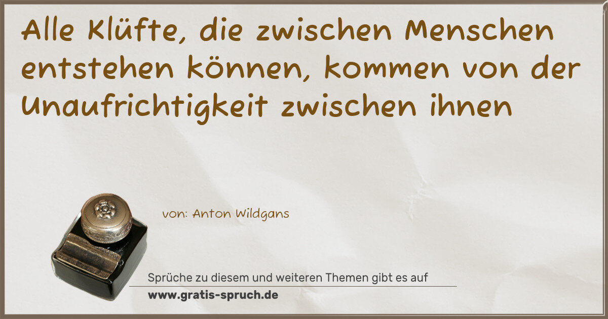 Alle Klüfte, die zwischen Menschen entstehen können, kommen von der Unaufrichtigkeit zwischen ihnen