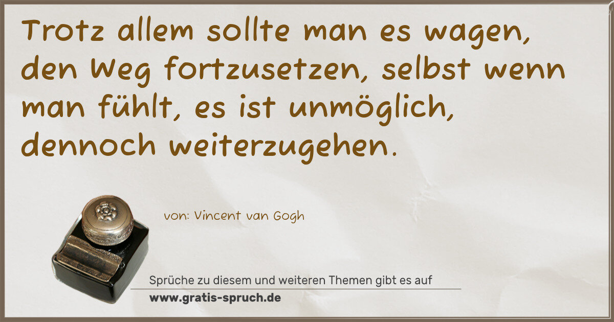 Trotz allem sollte man es wagen, den Weg fortzusetzen, selbst wenn man fühlt, es ist unmöglich, dennoch weiterzugehen.