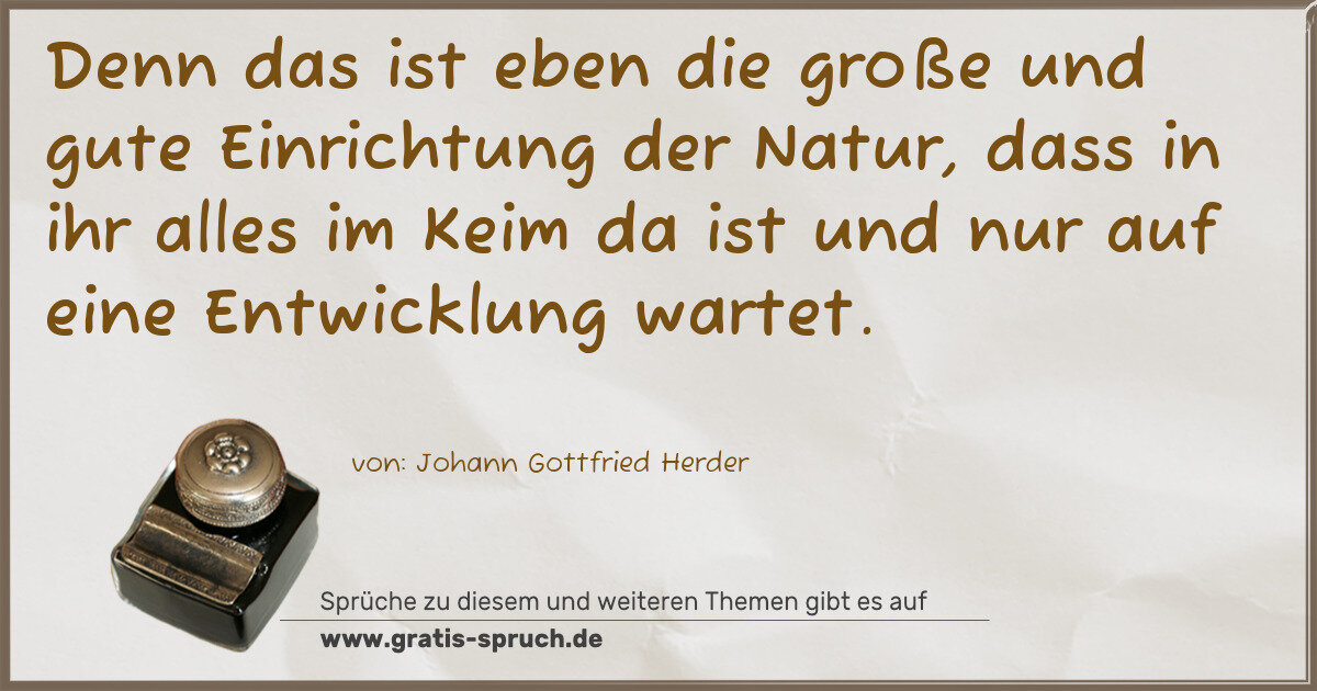 Denn das ist eben die große und gute Einrichtung der Natur, dass in ihr alles im Keim da ist und nur auf eine Entwicklung wartet.