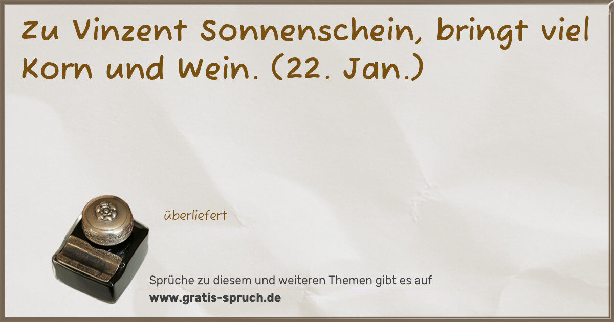 Zu Vinzent Sonnenschein, bringt viel Korn und Wein. (22. Jan.)