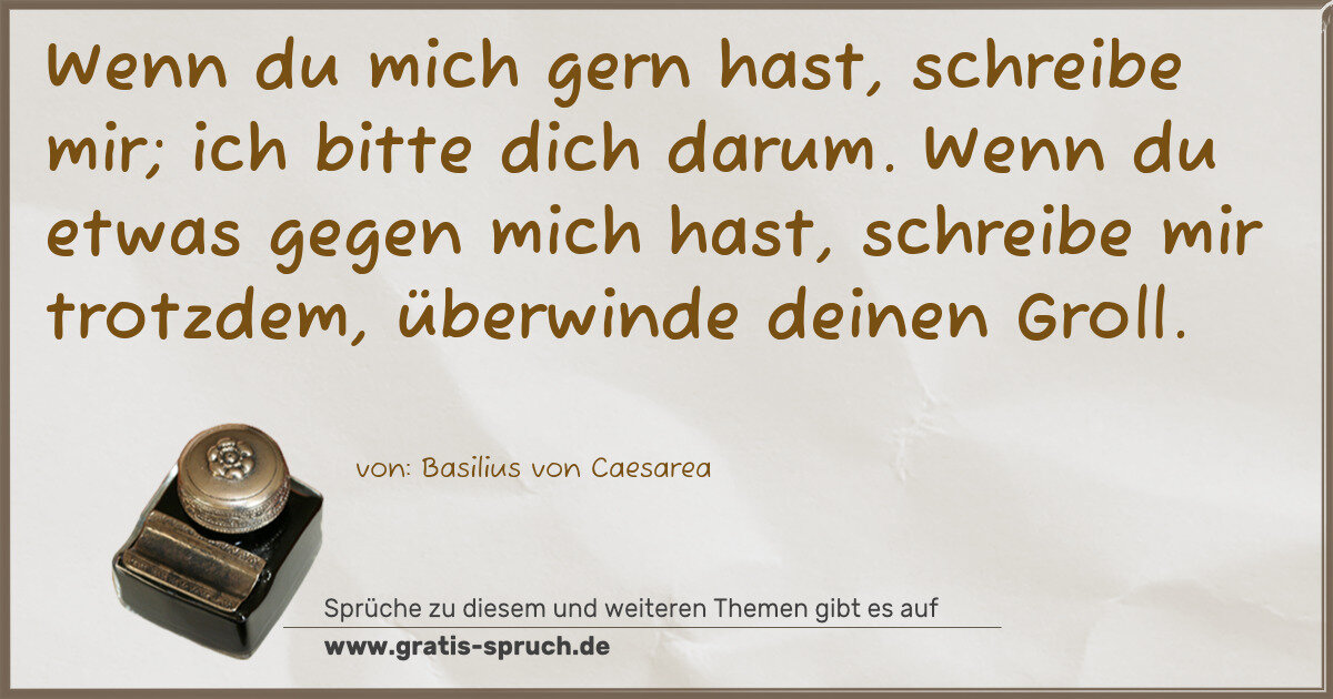 »Wenn du mich gern hast, schreibe mir; ich bitte dich darum. Wenn du etwas gegen mich hast, schreibe mir trotzdem, überwinde deinen Groll.