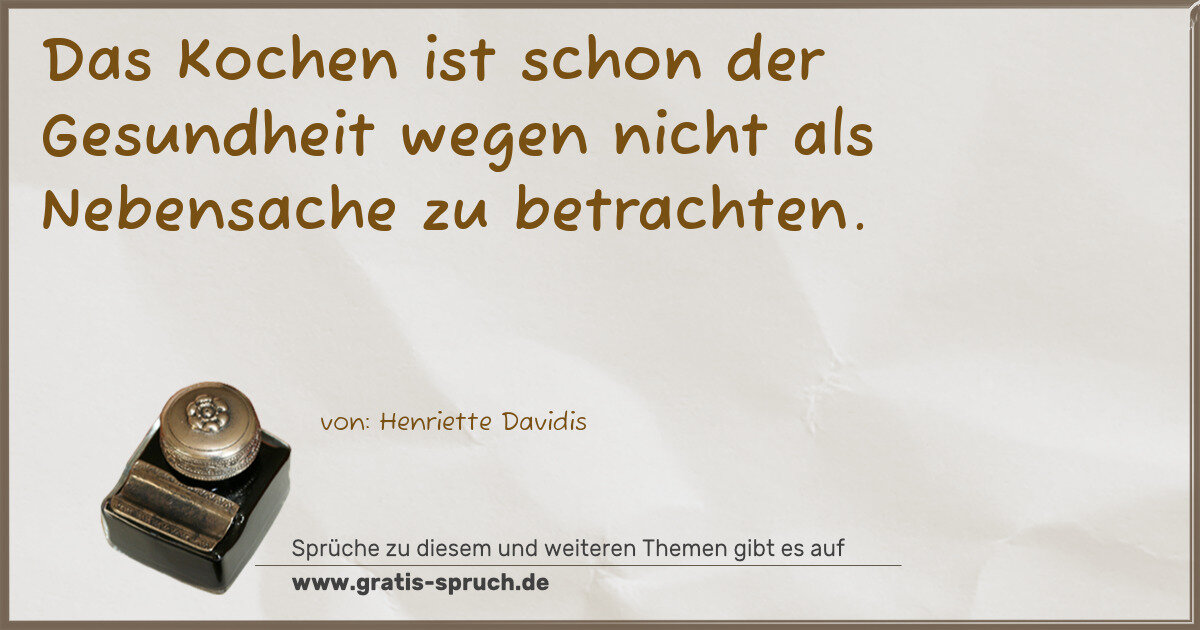 Das Kochen ist schon der Gesundheit wegen nicht als Nebensache zu betrachten.