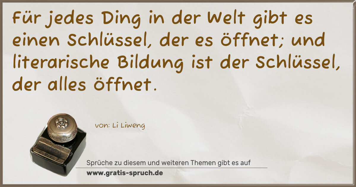 Für jedes Ding in der Welt gibt es einen Schlüssel, der es öffnet; und literarische Bildung ist der Schlüssel, der alles öffnet.