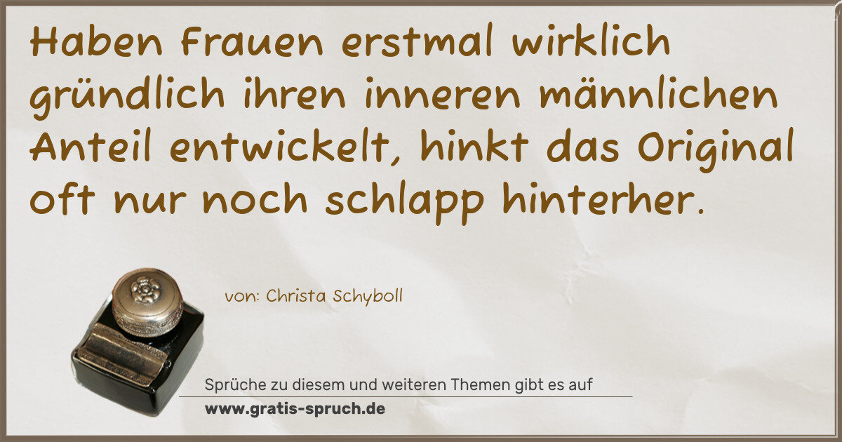»Haben Frauen erstmal wirklich gründlich ihren inneren männlichen Anteil entwickelt, hinkt das Original oft nur noch schlapp hinterher.