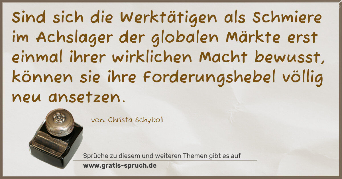 »Sind sich die Werktätigen als Schmiere im Achslager der globalen Märkte erst einmal ihrer wirklichen Macht bewusst, können sie ihre Forderungshebel völlig neu ansetzen.
