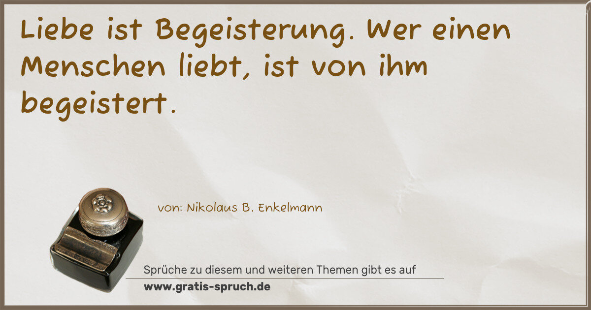 Liebe ist Begeisterung. Wer einen Menschen liebt, ist von ihm begeistert.