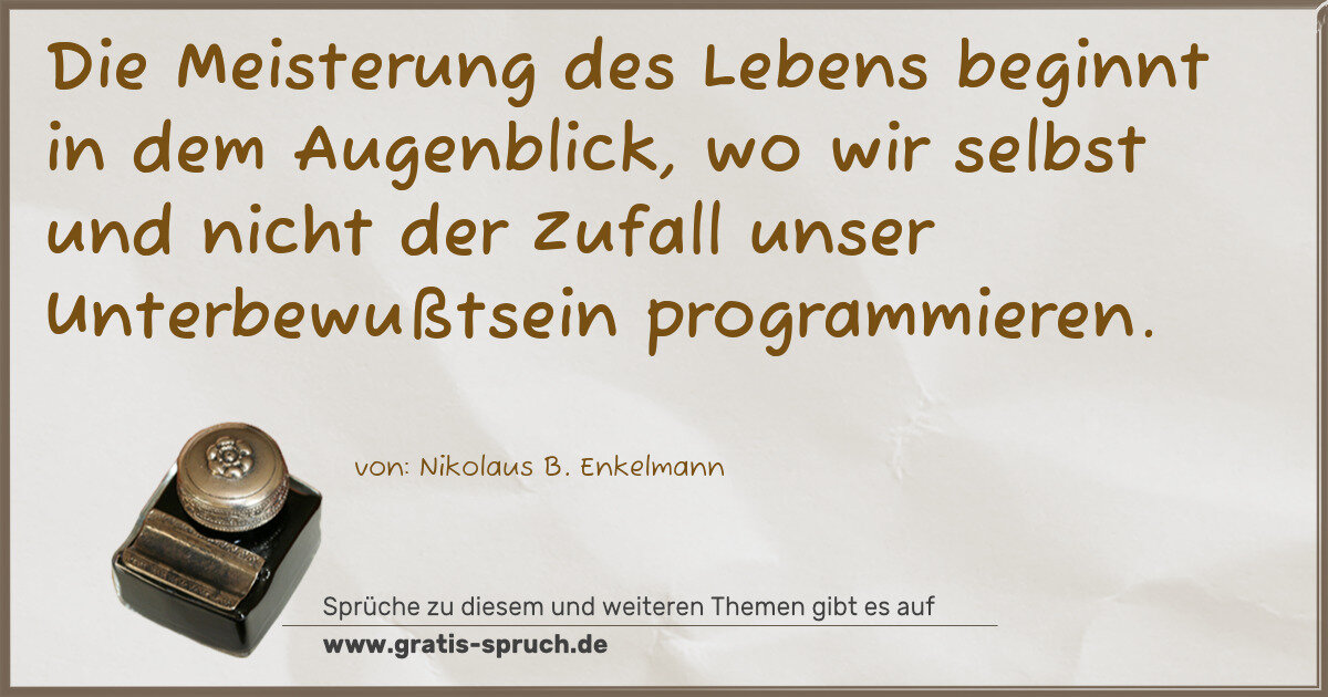 Die Meisterung des Lebens beginnt in dem Augenblick, wo wir selbst und nicht der Zufall unser Unterbewußtsein programmieren.