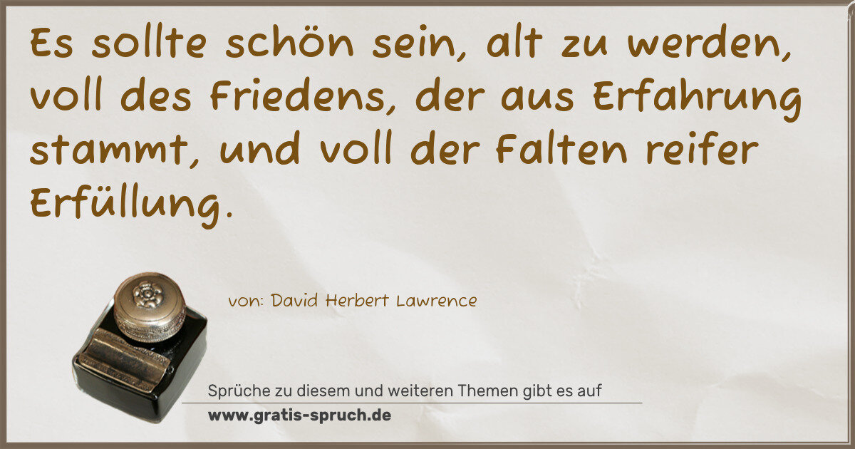 Es sollte schön sein, alt zu werden, voll des Friedens, der aus Erfahrung stammt, und voll der Falten reifer Erfüllung.