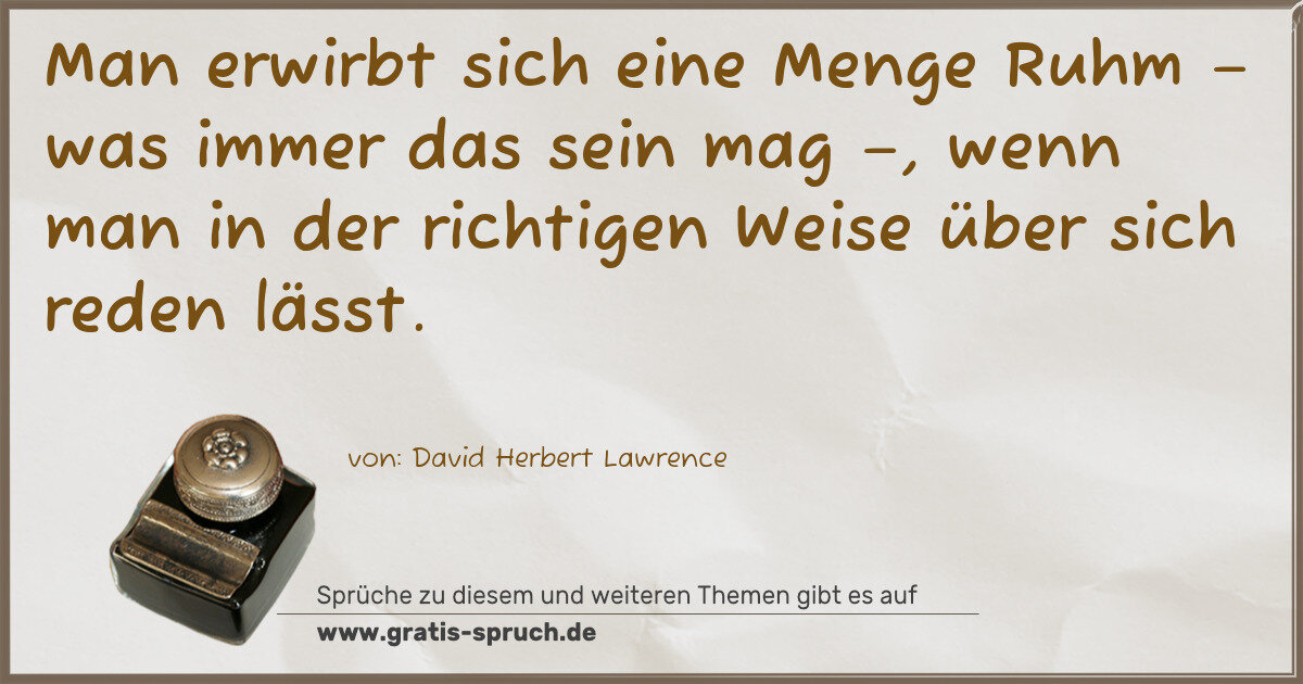 Man erwirbt sich eine Menge Ruhm – was immer das sein mag –, wenn man in der richtigen Weise über sich reden lässt.
