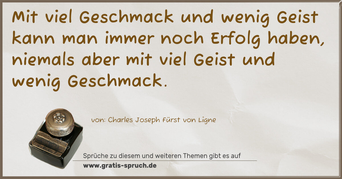 Mit viel Geschmack und wenig Geist kann man immer noch Erfolg haben, niemals aber mit viel Geist und wenig Geschmack.