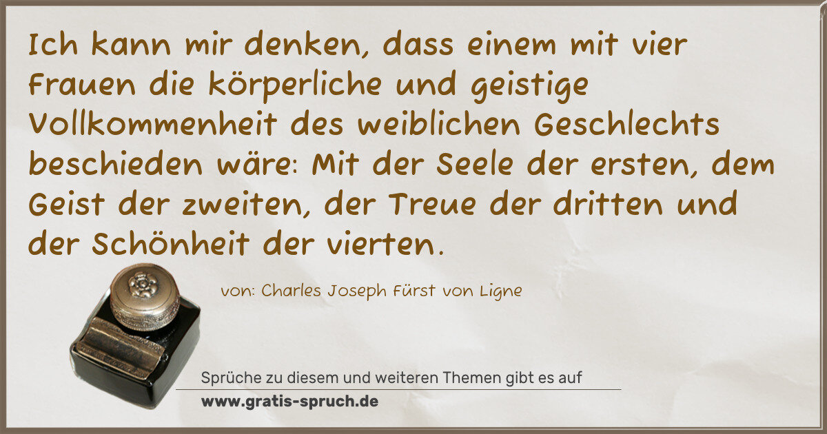 »Ich kann mir denken, dass einem mit vier Frauen die körperliche und geistige Vollkommenheit des weiblichen Geschlechts beschieden wäre: Mit der Seele der ersten, dem Geist der zweiten, der Treue der dritten und der Schönheit der vierten.