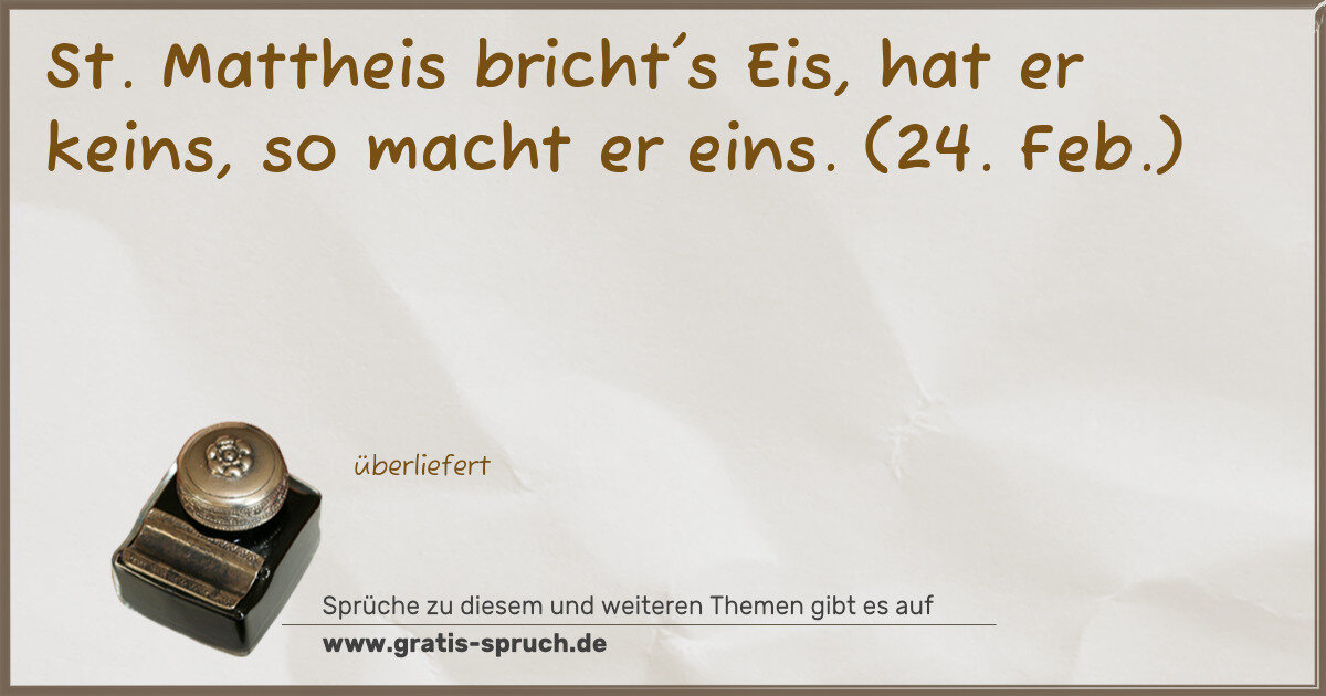 St. Mattheis bricht's Eis, hat er keins, so macht er eins. (24. Feb.)