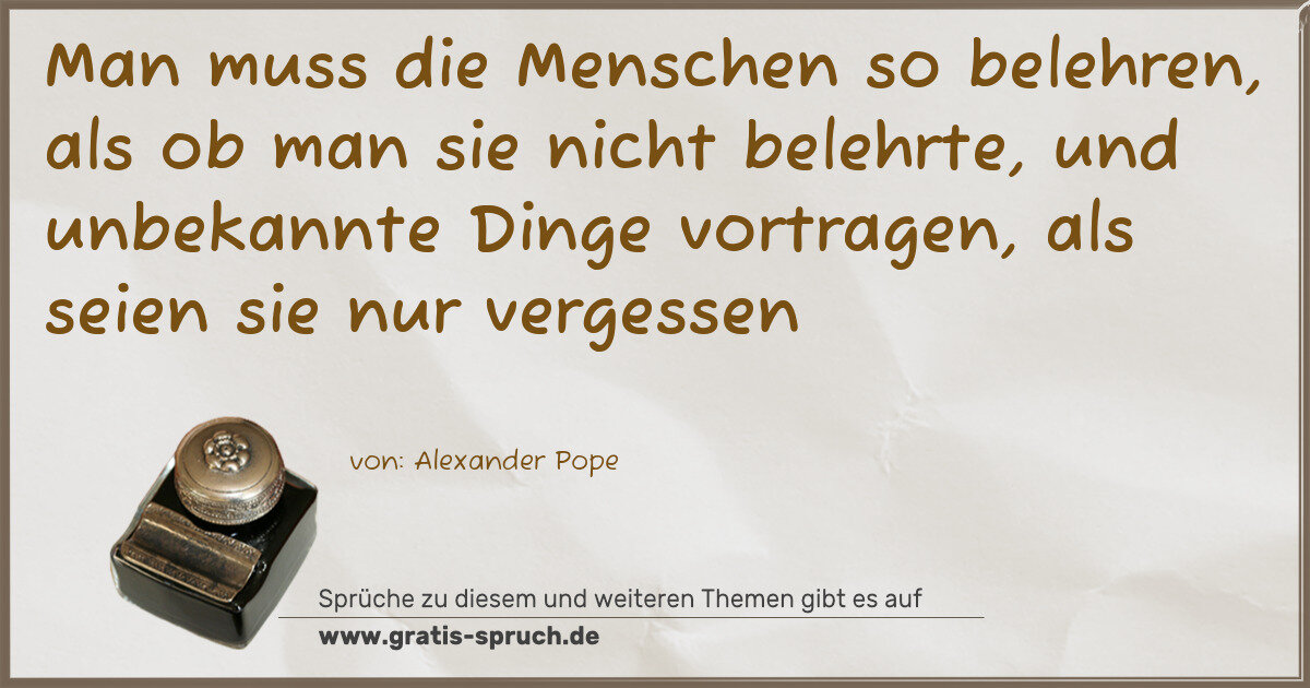 Man muss die Menschen so belehren, als ob man sie nicht belehrte, und unbekannte Dinge vortragen, als seien sie nur vergessen