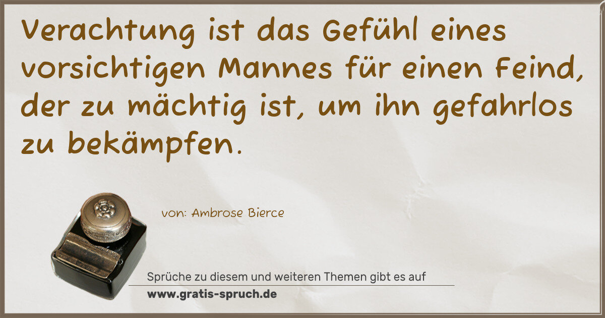 Verachtung ist das Gefühl eines vorsichtigen Mannes für einen Feind, der zu mächtig ist, um ihn gefahrlos zu bekämpfen.