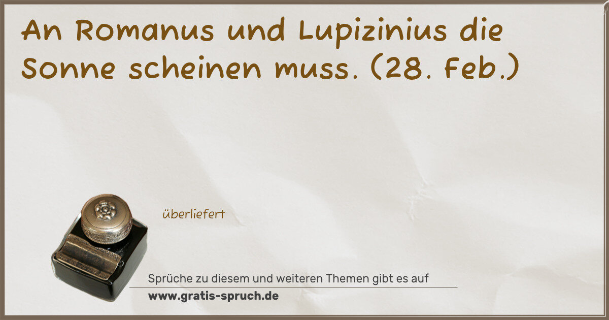 An Romanus und Lupizinius die Sonne scheinen muss. (28. Feb.)